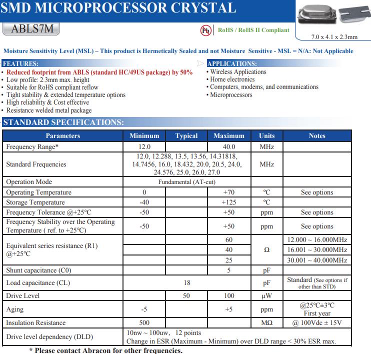 ABRACON晶振 | 單位 | ABLS7M晶振 | 石英晶振基本條件 |