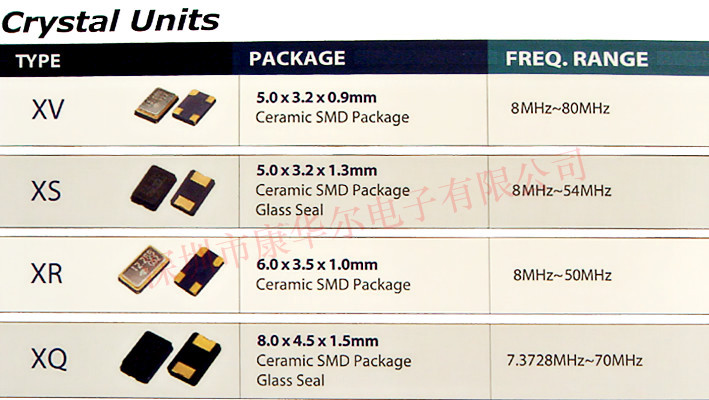 晶振目錄表 | 泰藝石英晶體諧振器 XS | ||||