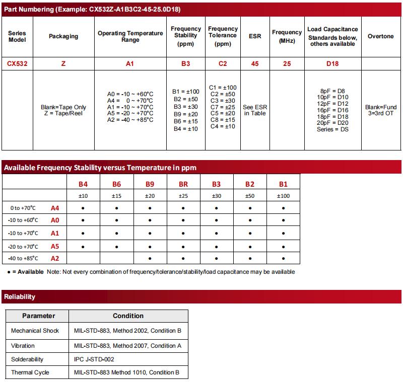 CX532Z-A5B3C5-70-25.0D18,Cardinal輕薄型晶振,5032mm諧振器,物聯網晶振,參數表