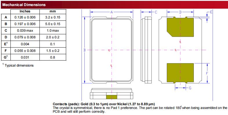 CX532Z-A5B3C5-70-25.0D18,Cardinal輕薄型晶振,5032mm諧振器,物聯網晶振,尺寸圖