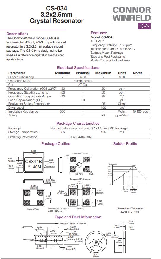 CS-034-040.0M | Connor-Winfield | CS-034 | 40MHz | ±50ppm | ±30ppm | 10pF | 25 Ohm | -40°C ~ 85°C |