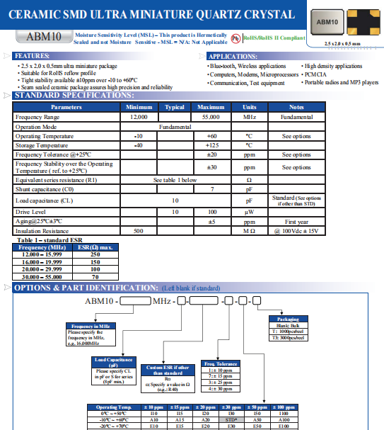 ABRACON晶振 | 單位 | ABM10晶振 | 石英晶振基本條件 |