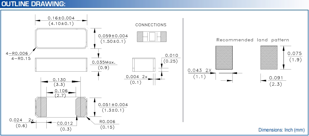 激勵功率 | DL | 1.0μW Max. | 推薦:100μW ~ 300μW |