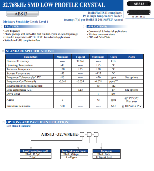 ABRACON晶振 | 單位 | ABS13晶振 | 石英晶振基本條件 |
