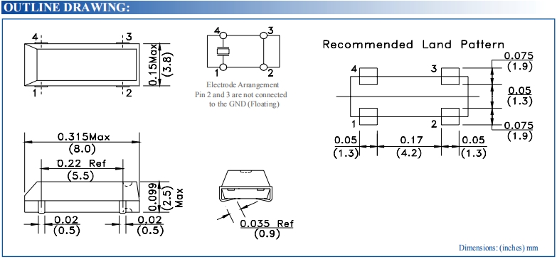 激勵功率 | DL | 1.0μW Max. | 推薦:100μW ~ 300μW |