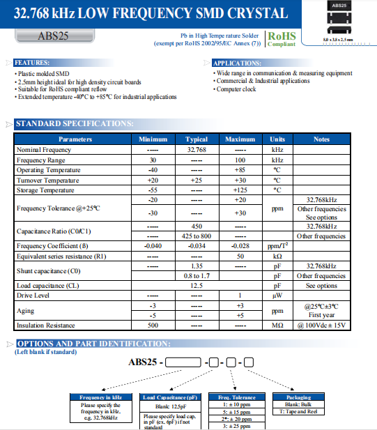 ABRACON晶振 | 單位 | ABS25晶振 | 石英晶振基本條件 |