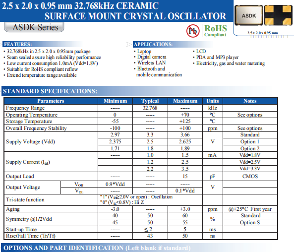 ABRACON晶振,ASDK2-32.768KHZ-LR-T3晶振,ASDK晶振,高質(zhì)量振蕩器.智能手機(jī)晶振,產(chǎn)品具有高精度超小型的表面貼片型石英晶體振蕩器,最適用于移動(dòng)通信終端的基準(zhǔn)時(shí)鐘等移動(dòng)通信領(lǐng)域.比如智能手機(jī),無(wú)線通信,衛(wèi)星導(dǎo)航,平臺(tái)基站等較高端的數(shù)碼產(chǎn)品,晶振本身小型,薄型具備各類移動(dòng)通信的基準(zhǔn)時(shí)鐘源用頻率,貼片晶振具有優(yōu)良的電氣特性,耐環(huán)境性能適用于移動(dòng)通信領(lǐng)域,滿足無(wú)鉛焊接的高溫回流溫度曲線要求.