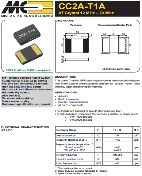 Microcrystal晶振 | 單位 | CC2A-T1A晶振 | 石英晶振基本條件 |