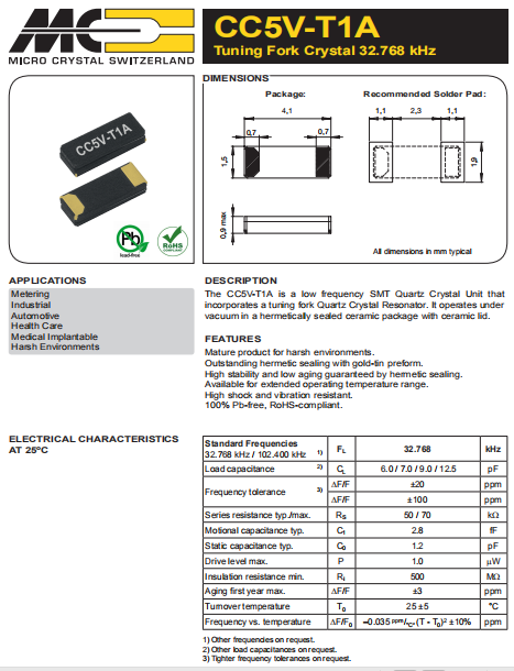 Microcrystal晶振 | 單位 | CC5V-T1A晶振 | 石英晶振基本條件 |