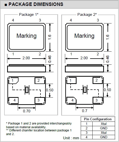 頻率溫度特征 | f_tem | ±50× 10-6 /-30°C~+85°C | 超出標準的規格請聯系我們. |