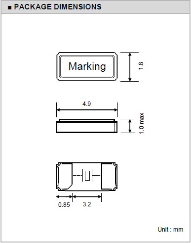 激勵功率 | DL | 1.0μW Max. | 推薦:100μW ~ 300μW |