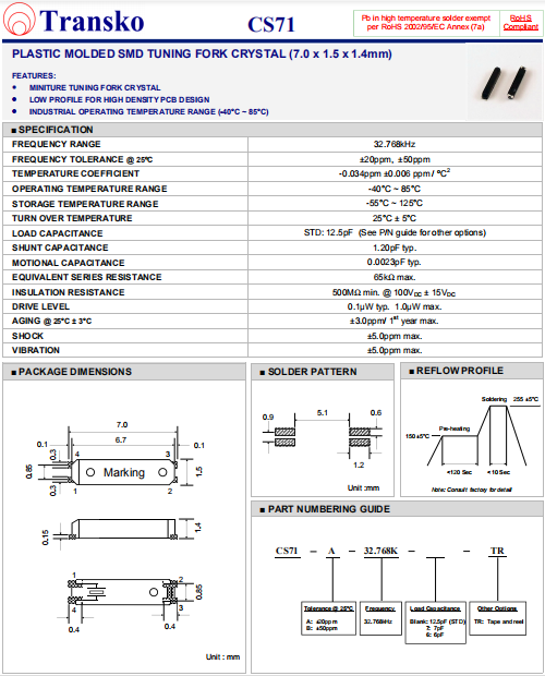 Transko晶振 | 單位 | CS71晶振 | 石英晶振基本條件 |