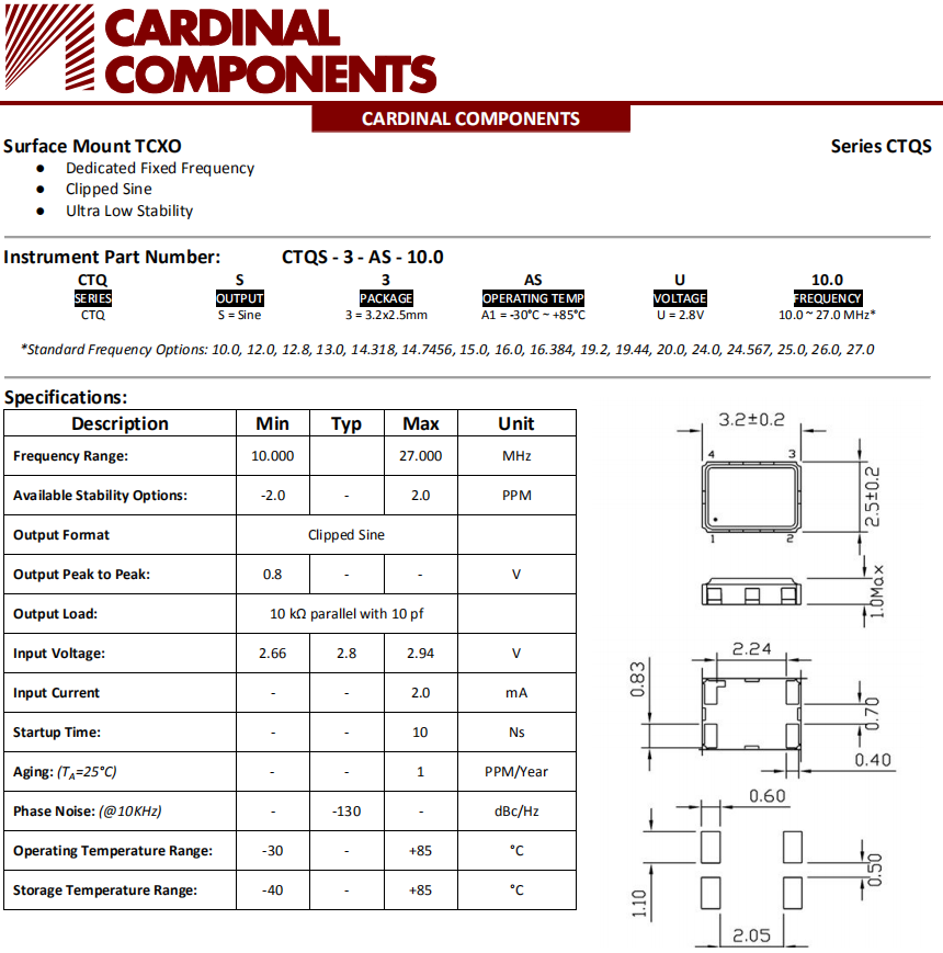 Cardinal晶振,CTQS晶振,溫度補償晶振.貼片式石英晶體振蕩器,低電壓啟動功率,并且有多種電壓供選擇,比如有1.8V,2.5V,3.3V,3.8V,5V等,產(chǎn)品被廣泛應(yīng)用于,平板筆記本,GPS系統(tǒng),光纖通道,千兆以太網(wǎng),串行ATA,串行連接SCSI,PCI-Express的SDH/SONET發(fā)射基站等領(lǐng)域.符合RoHS/無鉛.