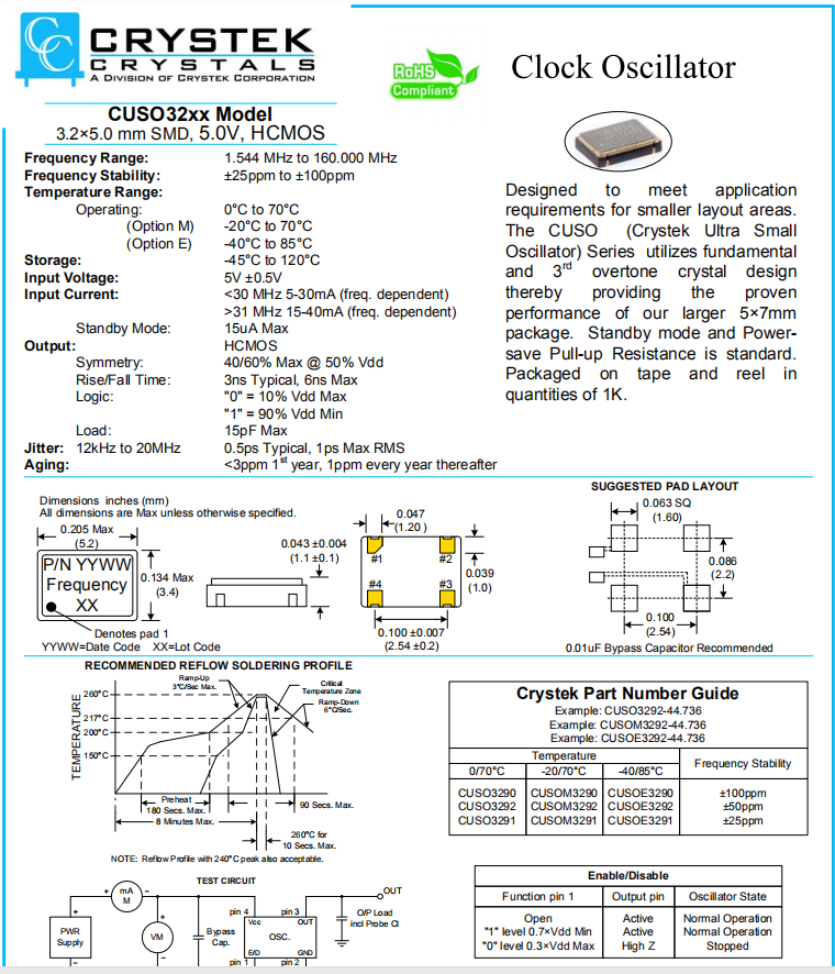 CRYSTEK晶振,CUSO32xx晶振,有源晶體振蕩器.有源晶振,是只晶體本身起振需要外部電壓供應,起振后可直接驅動CMOS集成電路,產品本身已實現與薄型IC(TSSOP封裝,TVSOP封裝)同樣的1mm厚度,斷開時的消費電流是15µA以下,編帶包裝方式可對應自動搭載及IR回流焊接(無鉛對應)產品有幾種電壓供選1.8V,2.5V,3V3.3V,5V,以應對不同IC產品需要.