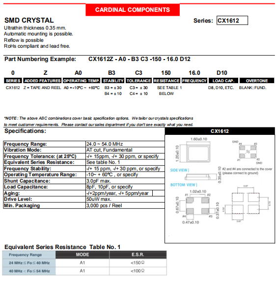 Cardinal晶振 | 單位 | CX1612晶振 | 石英晶振基本條件 |