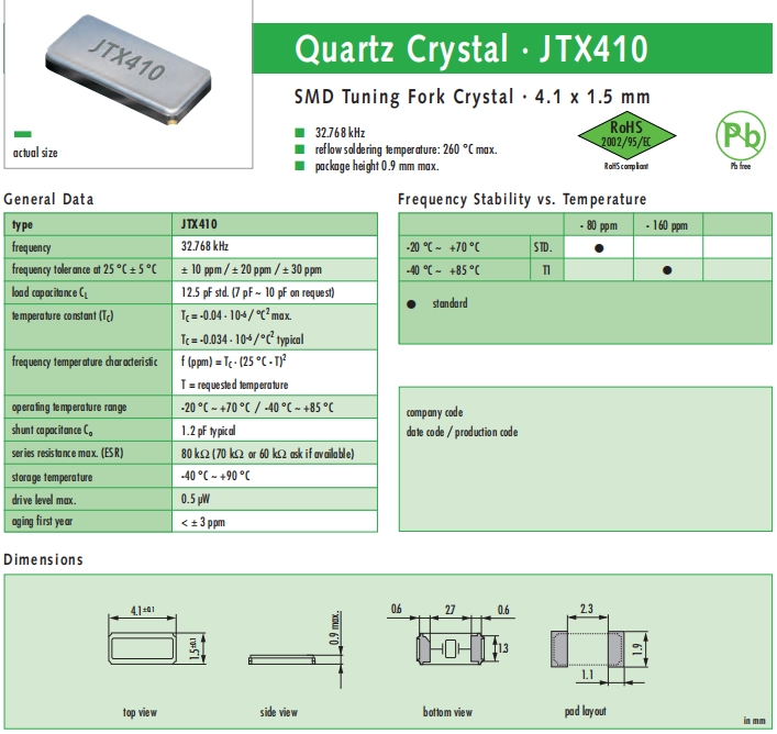 JAUCH晶振 | 單位 | JTX410晶振 | 石英晶振基本條件 |