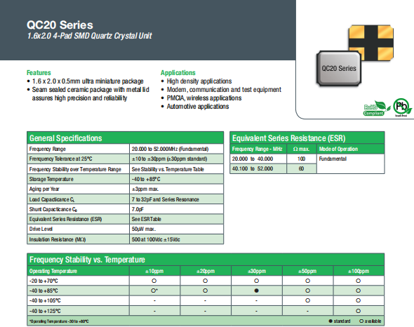 Qantek晶振 | 單位 | QC20晶振 | 石英晶振基本條件 |