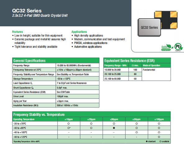 Qantek晶振 | 單位 | QC32晶振 | 石英晶振基本條件 |