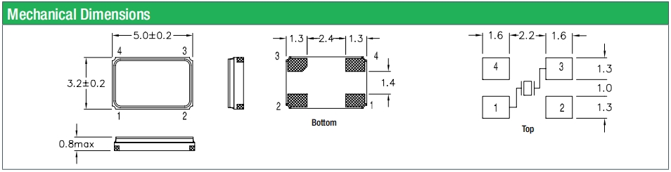 頻率溫度特征 | f_tem | ±50× 10-6 /-30°C~+85°C | 超出標準的規格請聯系我們. |