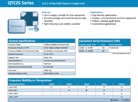 Quarztechnik晶振 | 單位 | QTC25晶振 | 石英晶振基本條件 |