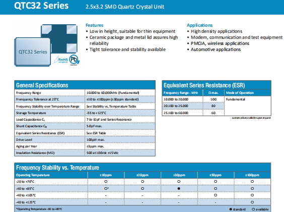 Quarztechnik晶振 | 單位 | QTC32晶振 | 石英晶振基本條件 |