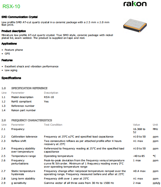 Rakon晶振 | 單位 | RSX-10晶振 | 石英晶振基本條件 |