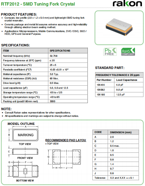 Rakon晶振 | 單位 | RTF2012晶振 | 石英晶振基本條件 |