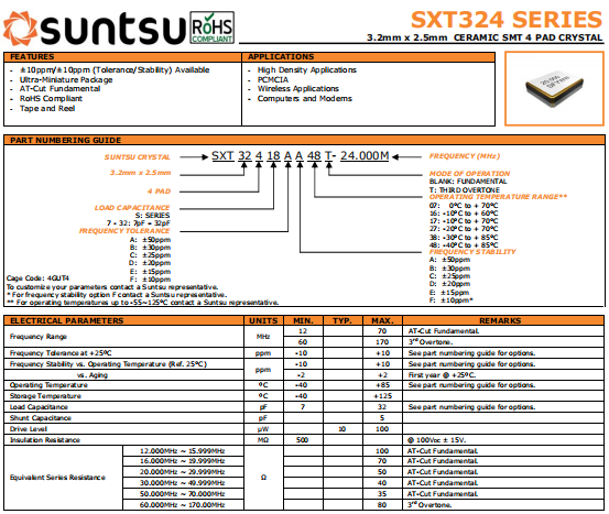 suntsu晶振 | 單位 | SXT324晶振 | 石英晶振基本條件 |