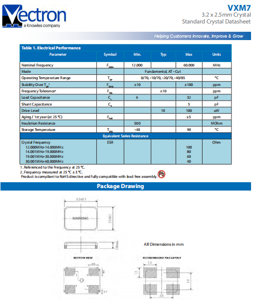 VECTRON晶振 | 單位 | VXM7晶振 | 石英晶振基本條件 |
