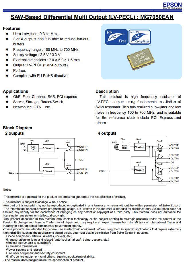 X1M0004110019,LV-PECL石英差分晶振,7050mm晶體振蕩器 ,日本愛普生晶振,MG7050EAN進(jìn)口晶振,X1M0004110019有源晶振,石英晶體振蕩器,LV-PECL石英差分晶振,頻率200MHz,電壓3.3V,工作溫度-5~85°C,頻率穩(wěn)定性50ppm,尺寸7050mm,超低抖動晶振,GbE晶振,光纖通道晶振,網(wǎng)絡(luò)服務(wù)器晶振,存儲晶振,路由器晶振,PCI express晶振.