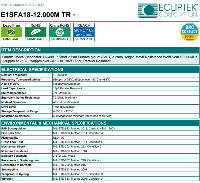 日蝕晶振,E1SFA18-12.000M-TR晶振,49SMD晶振,ECLIPTEK已經(jīng)實施了中國對危險物質(zhì)(RoHS)的限制措施,以回應(yīng)國際社會對鉛(鉛)和其他有害物質(zhì)在電子部件和組件制造中所使用的有害物質(zhì)的擔(dān)憂。ECLIPTEK公司致力于保護環(huán)境,作為負(fù)責(zé)任的企業(yè)公民。ECLIPTEK一直在努力解決電子行業(yè)的RoHS和無pb合規(guī)問題。我們的目標(biāo)是逐步消除不兼容產(chǎn)品的使用,為我們的客戶提供符合要求的替代進口晶振產(chǎn)品,以及發(fā)布的生命周期的結(jié)束,從而提供足夠的時間來批準(zhǔn)兼容的產(chǎn)品。