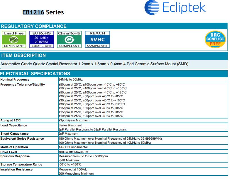Ecliptek晶振 | 單位 | EB1212晶振 | 石英晶振基本條件 |