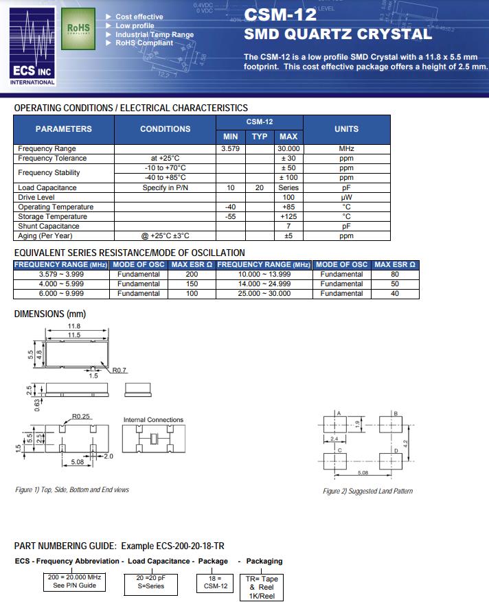 ECS-40-20-18-TR | CSM-12 | 4MHz | ±30ppm | 20pF | -40°C ~ 85°C |