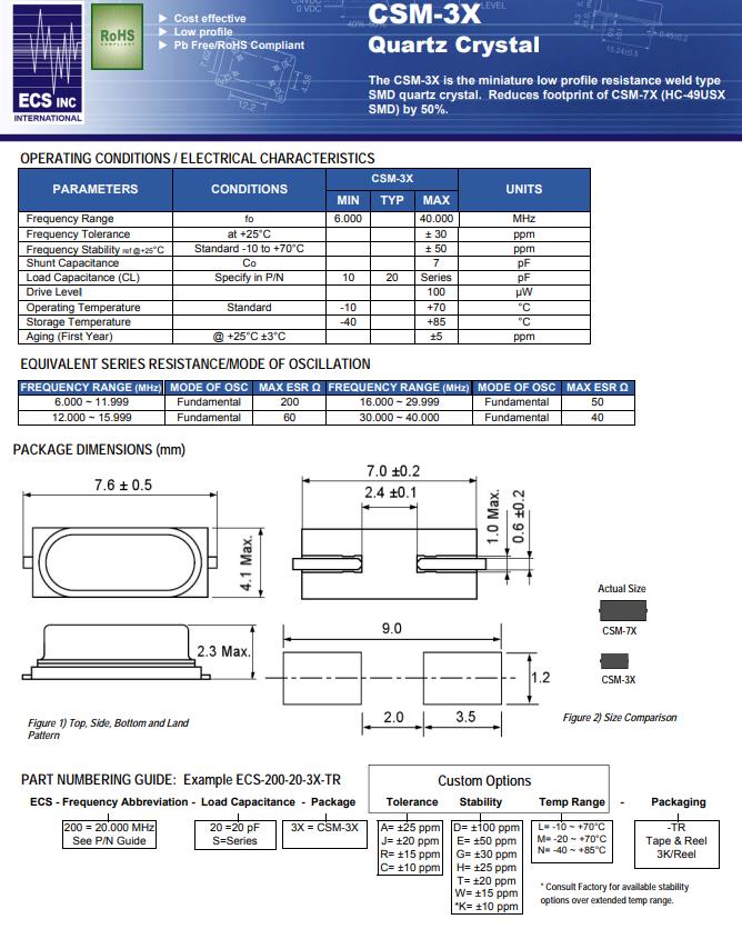 ECS-184-20-3X-TR | CSM-3X | 18.432MHz | ±30ppm | 20pF | -10°C ~ 70°C | HC49/US |