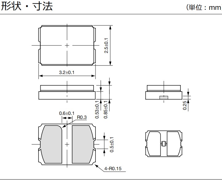 CX3225GA27000D0PTVCC-水晶振動(dòng)子-高速車(chē)載網(wǎng)絡(luò)-27MHZ-Kyocera 尺寸圖