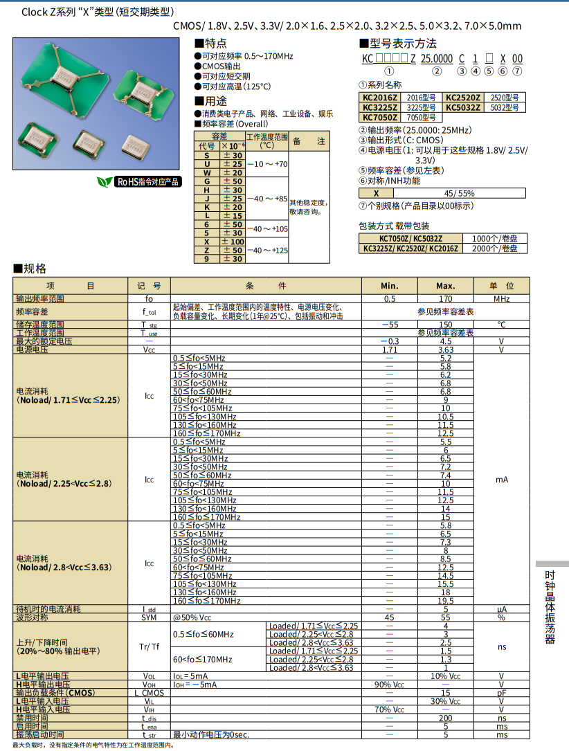 頻率容差 (x10 -6) | ±50 |