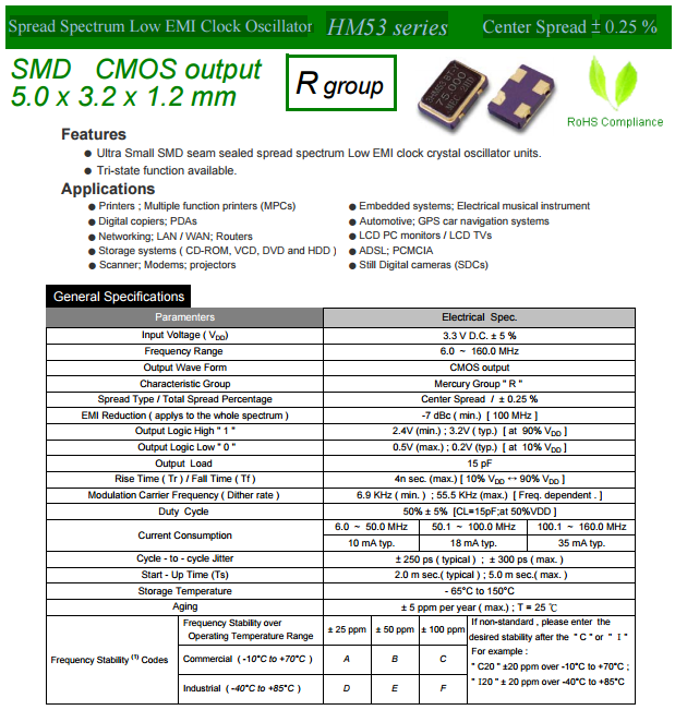 MERCURY晶體,5032有源晶振,HM53R石英晶體振蕩器.貼片有源石英晶振是指在普通無源晶體上增加了電壓,內部集成了相應IC與電容電阻,需要在凈化萬級車間生產,并且在密封機器設備中焊接加蓋,內部封裝模式是指在真空封裝區域內進行封裝.1.防止外界氣體進入組件體內受到污染和增加應力的產生;2.使組件在真空下電阻減小;3.氣密性高.此技術為研發及生產超小型,超薄型石英晶體元器必須攻克的關鍵技術之一