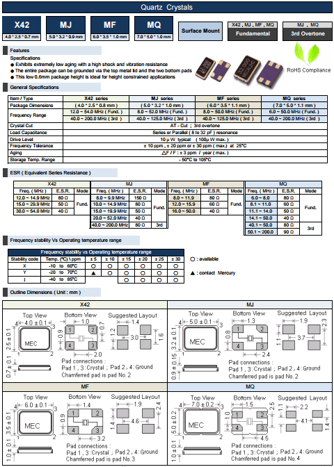 MERCURY晶振 | 單位 | X42晶振 | 石英晶振基本條件 |