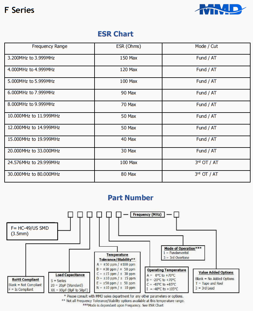 FF20AC1-8.000MHZ-T | MMD | F | -40°C ~ 85°C | 8 MHz | ±100ppm | ±50ppm | 20 pF |