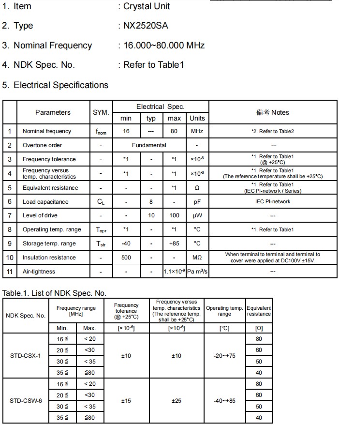 NX2520SA-16.000000MHZ | NDK晶振 | NX2520SA | 16MHz | ±10ppm | 4-SMD, No Lead |