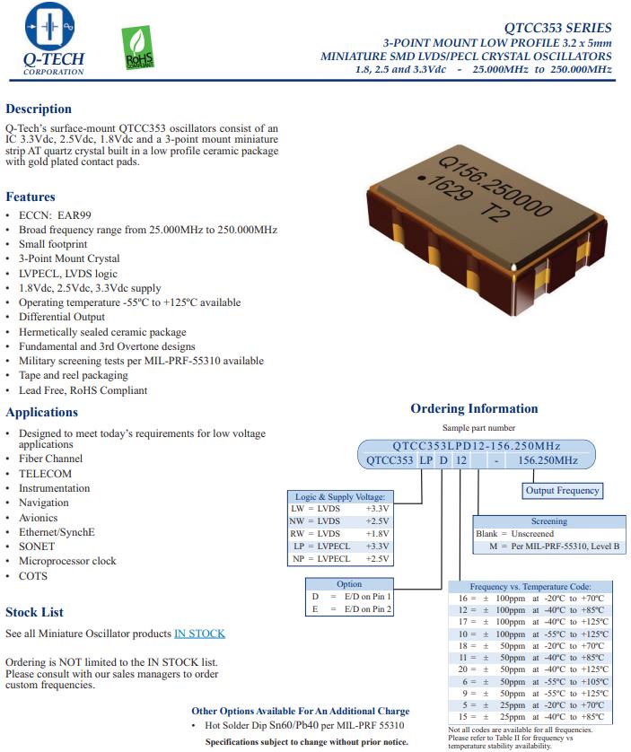 QCC325L5-40.000MHz-5032mm貼片晶振-6G常用晶振,Q-Tech的表面貼裝QCC325振蕩器由一個(gè)集成電路組成5Vdc, 3.3Vdc,2.5Vdc,1.8Vdc時(shí)鐘方波發(fā)生器和微型條AT石英晶體內(nèi)置在一個(gè)低輪廓的陶瓷封裝鍍金觸點(diǎn)墊,頻率40MHz,尺寸5032mm,工作溫度-40~85°C,編碼QCC325L5-40.000MHz,是6G常用貼片晶振,石英晶體振蕩器,火炮發(fā)射的彈藥和系統(tǒng)晶振,儀器設(shè)備晶振,北斗導(dǎo)航晶振,航空電子設(shè)備晶振.