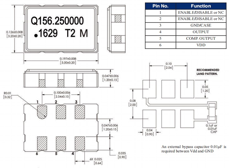 額定頻率 | 156.25MHz | 請聯系我們以便獲取其它可用頻率的相關信息 |