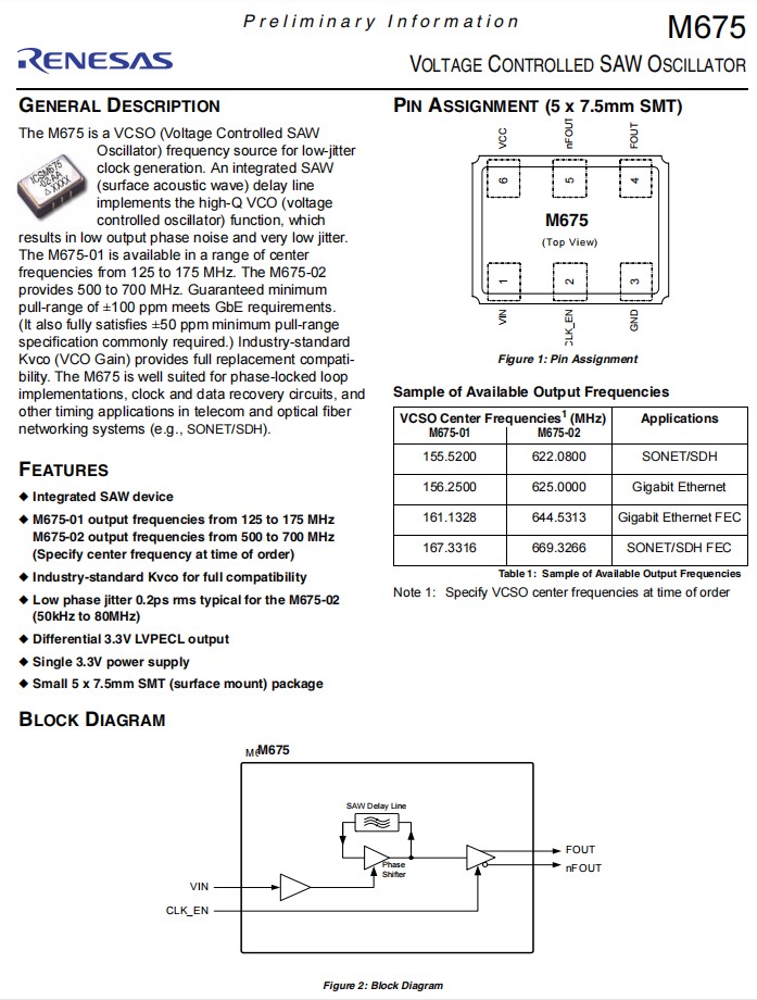 M675-02-AA | IDT晶振 | OSC VCSO 622.08MHZ LVPECL SMD | M675 |