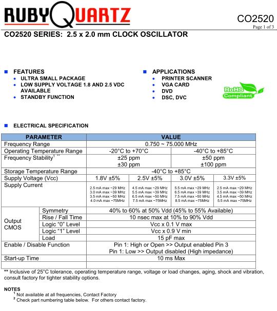 所有石英晶體諧振器和實(shí)時時鐘模塊都以IC形式提供.Rubyquartz有源振蕩子,CO2520時鐘振蕩器,CO2520-12.000-25-50-TR晶振.