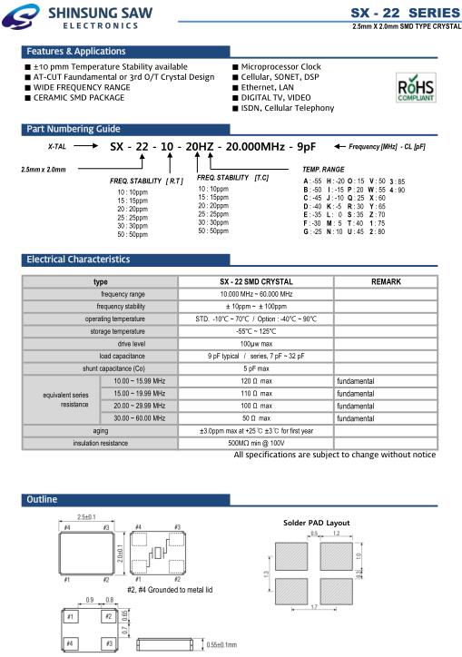 type | SX - 22 SMD CRYSTAL | REMARK | |