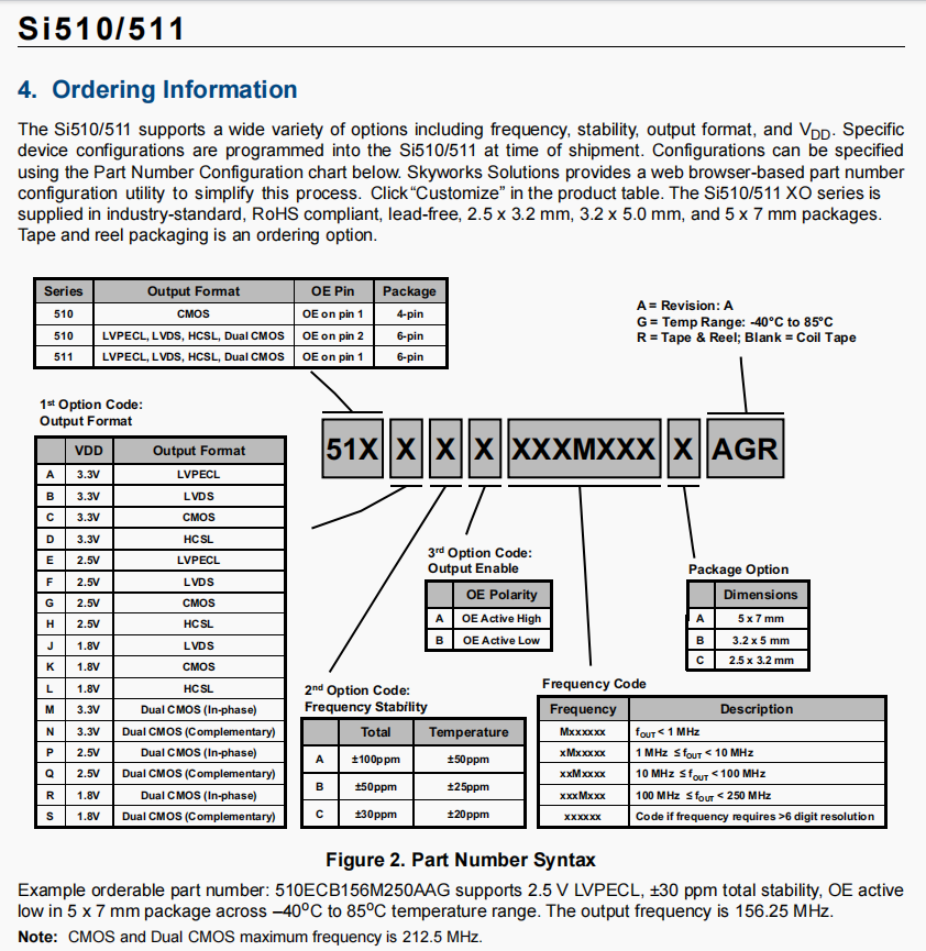 511ABA156M250AAGR | Skyworks晶振 | Si511 | XO | 156.25 MHz | LVPECL | 3.3V | ±25ppm |