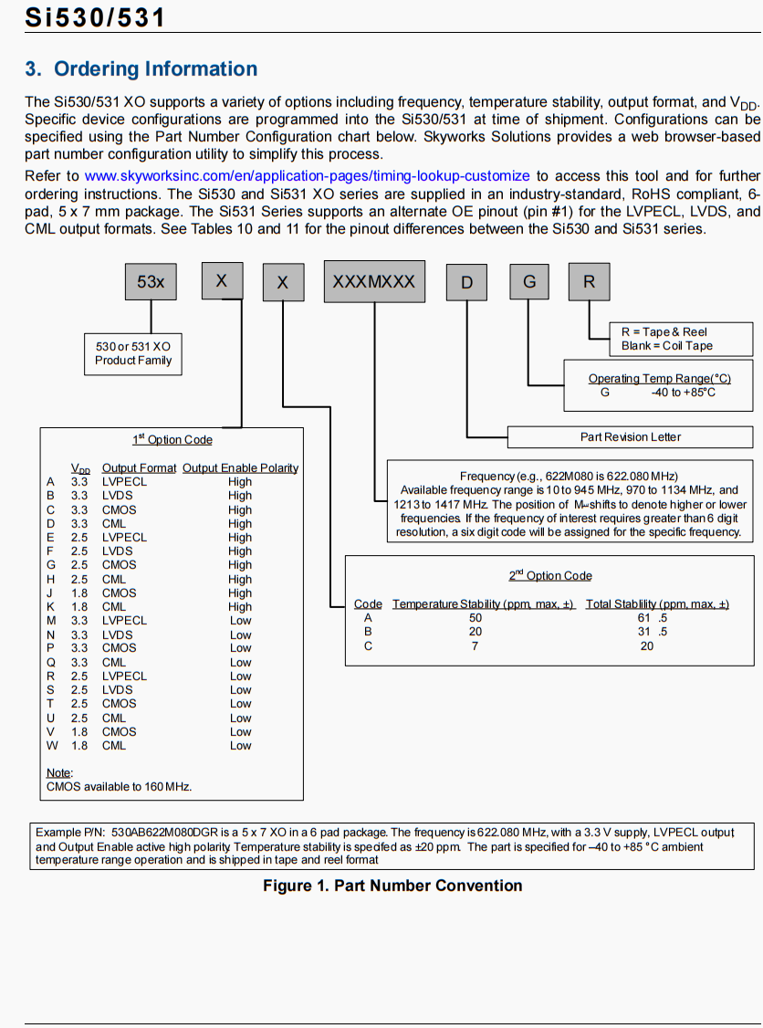 536AC156M250DG | Skyworks晶振 | Si536 | XO | 156.25 MHz | LVPECL | 3.3V | ±7ppm |