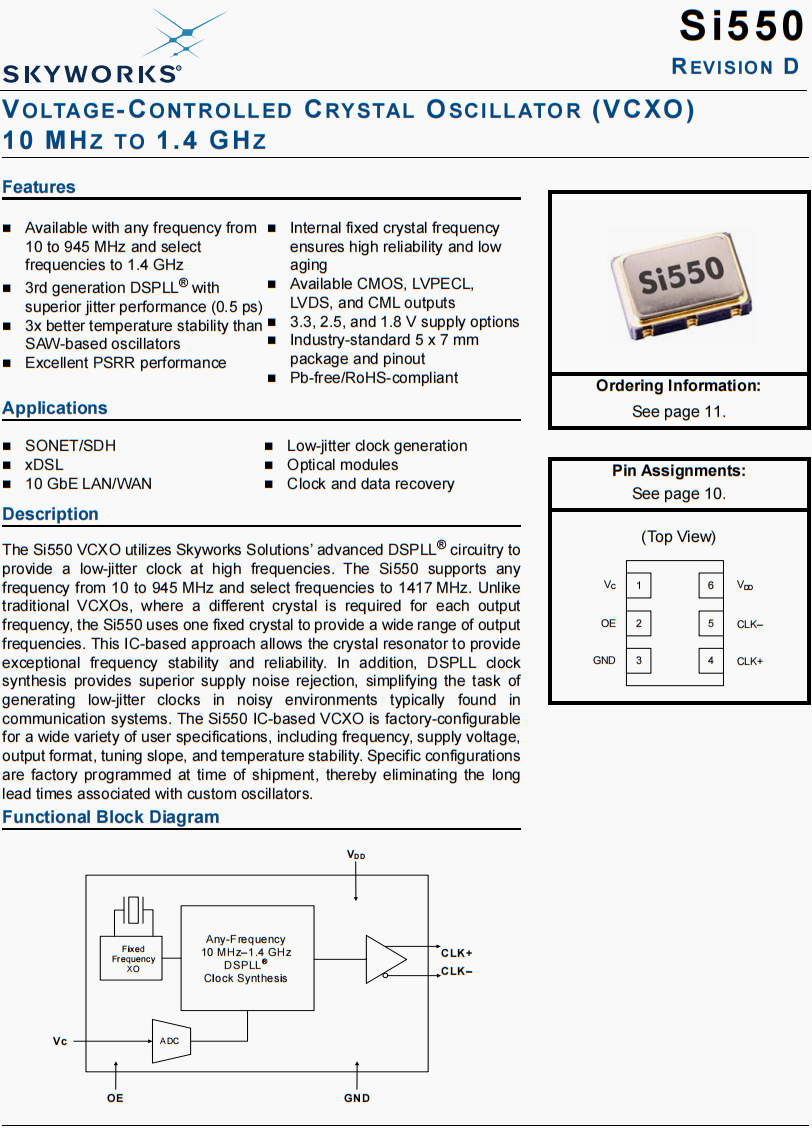 536BC155M520DGR | Skyworks晶振 | Si536 | XO | 155.52 MHz | LVDS | 3.3V | ±7ppm |