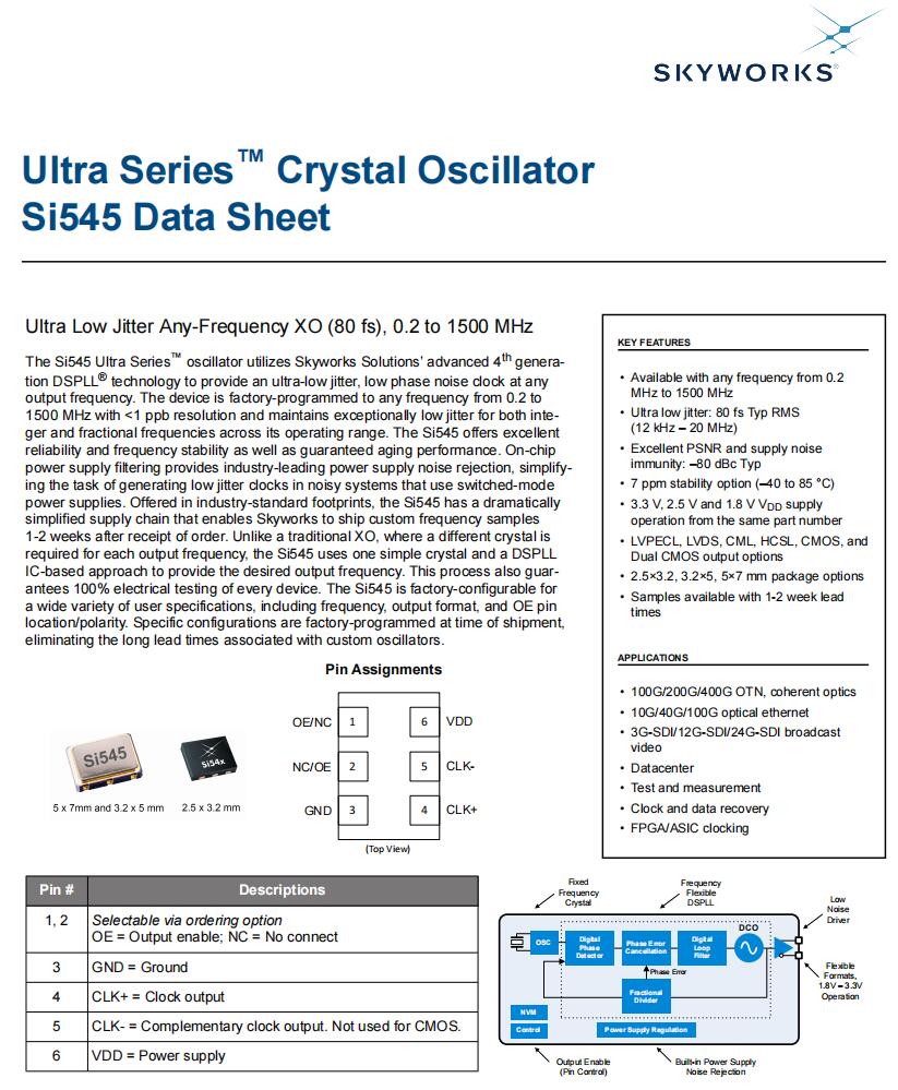 545BAA100M000BCG | Skyworks Solutions Inc. | Ultra™ Si545 | 100 MHz | LVDS | 1.8V ~ 3.3V | ±20ppm |