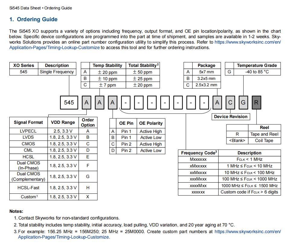 545AAC156M250BCGR | Skyworks Solutions Inc. | Ultra™ Si545 | 156.25 MHz | LVPECL | 2.5V ~ 3.3V | ±20ppm |